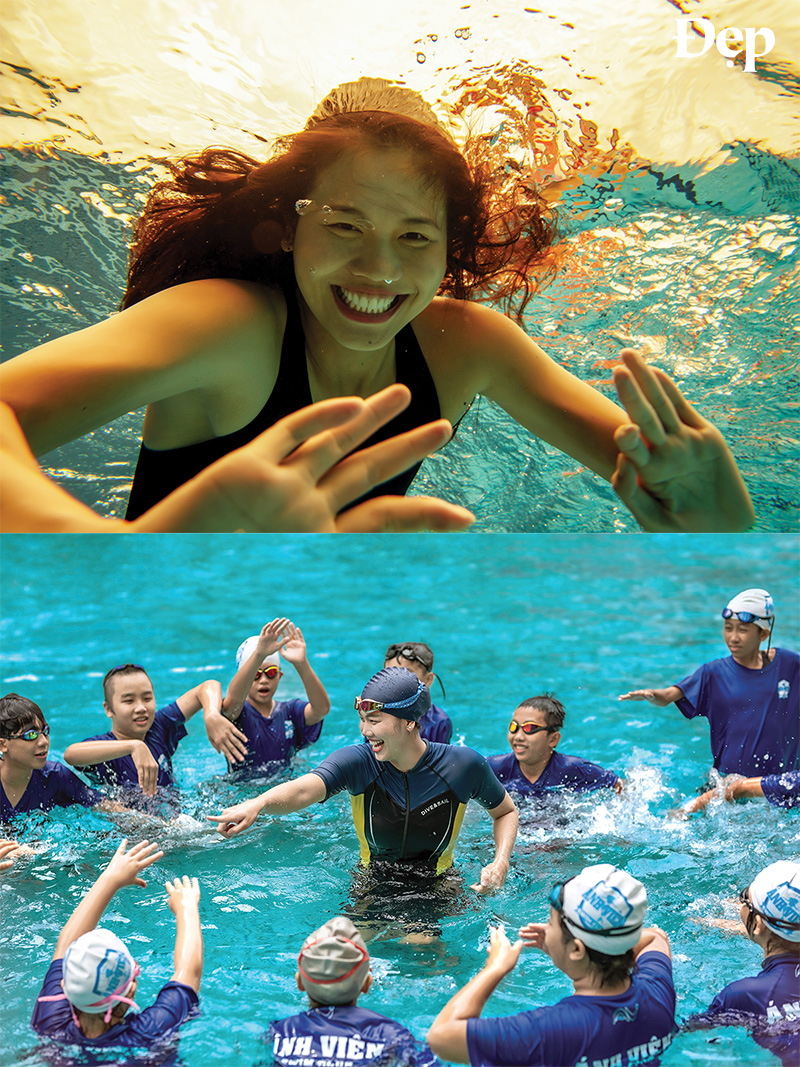 Chúng tôi hẹn nhau tại khuôn viên của một ngôi trường nơi Ánh Viên đang làm việc với vai trò huấn luyện viên bơi lội cho các bạn nhỏ. Vốn sẵn bản tính hiền lành, lại tiếp xúc với trẻ em hằng ngày, “nàng tiên cá” Ánh Viên toát lên một năng lượng thư thái khiến người xung quanh cảm thấy vô cùng dễ chịu.