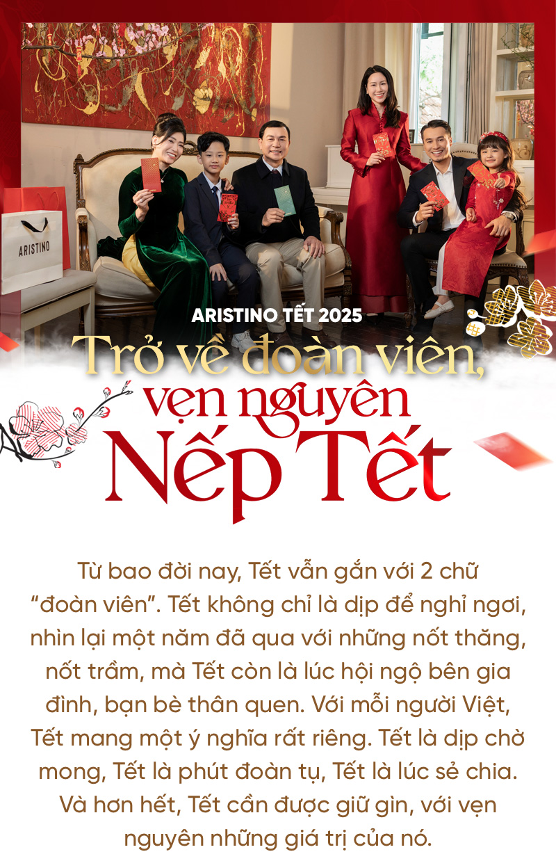 Câu chuyện về chiếc áo mới, về sự đoàn tụ sẻ chia là cách Aristino thấu hiểu nội tâm của những người đàn ông thành đạt. Đằng sau sự thành công của họ là sức mạnh của gia đình, nơi họ tìm thấy niềm tin, sự động viên và cả trọng trách cao cả. Mỗi thiết kế trong bộ sưu tập Aristino Tết 2025 là một cầu nối đưa các thế hệ xích lại gần nhau hơn, cùng nhau tận hưởng sự đầm ấm, trọn vẹn của những ngày đầu năm.