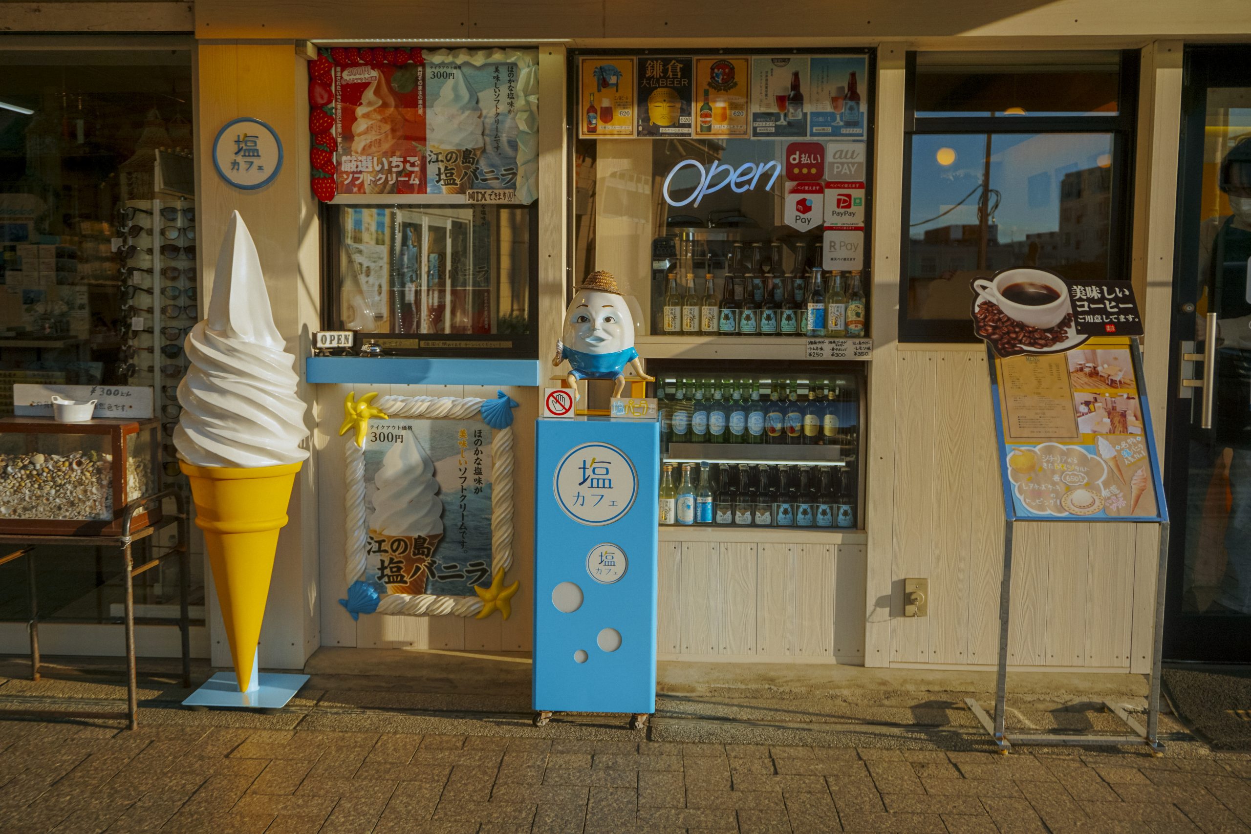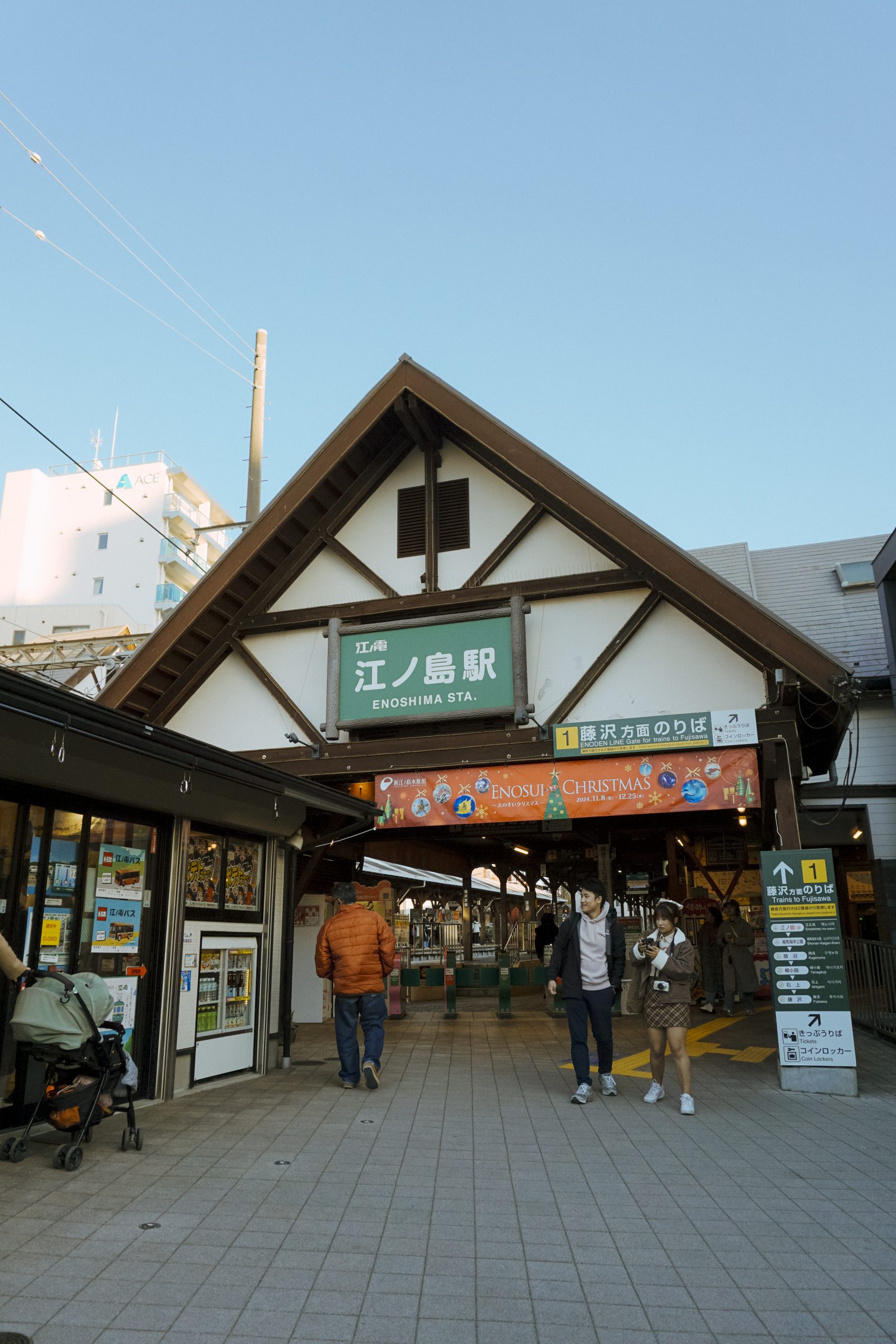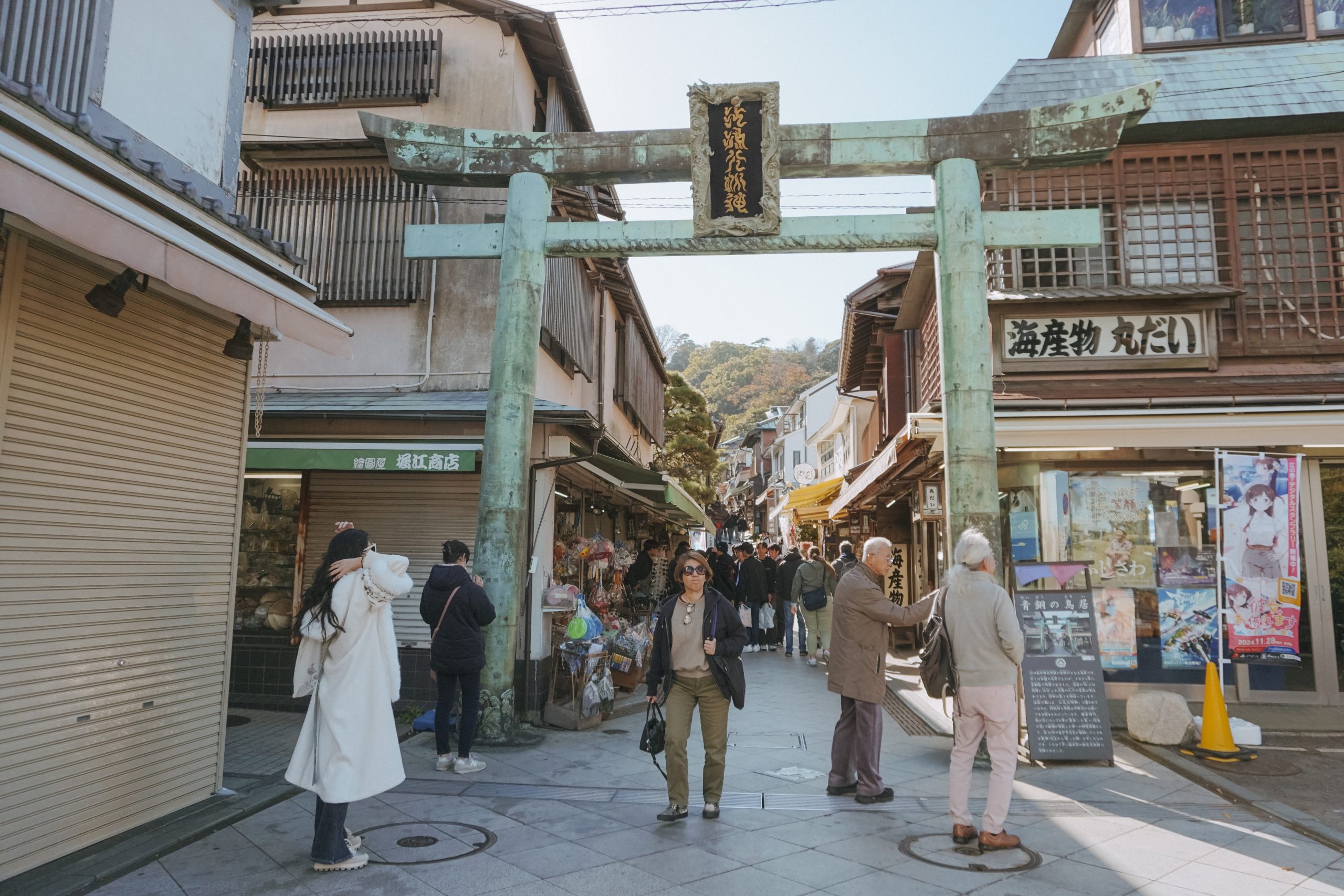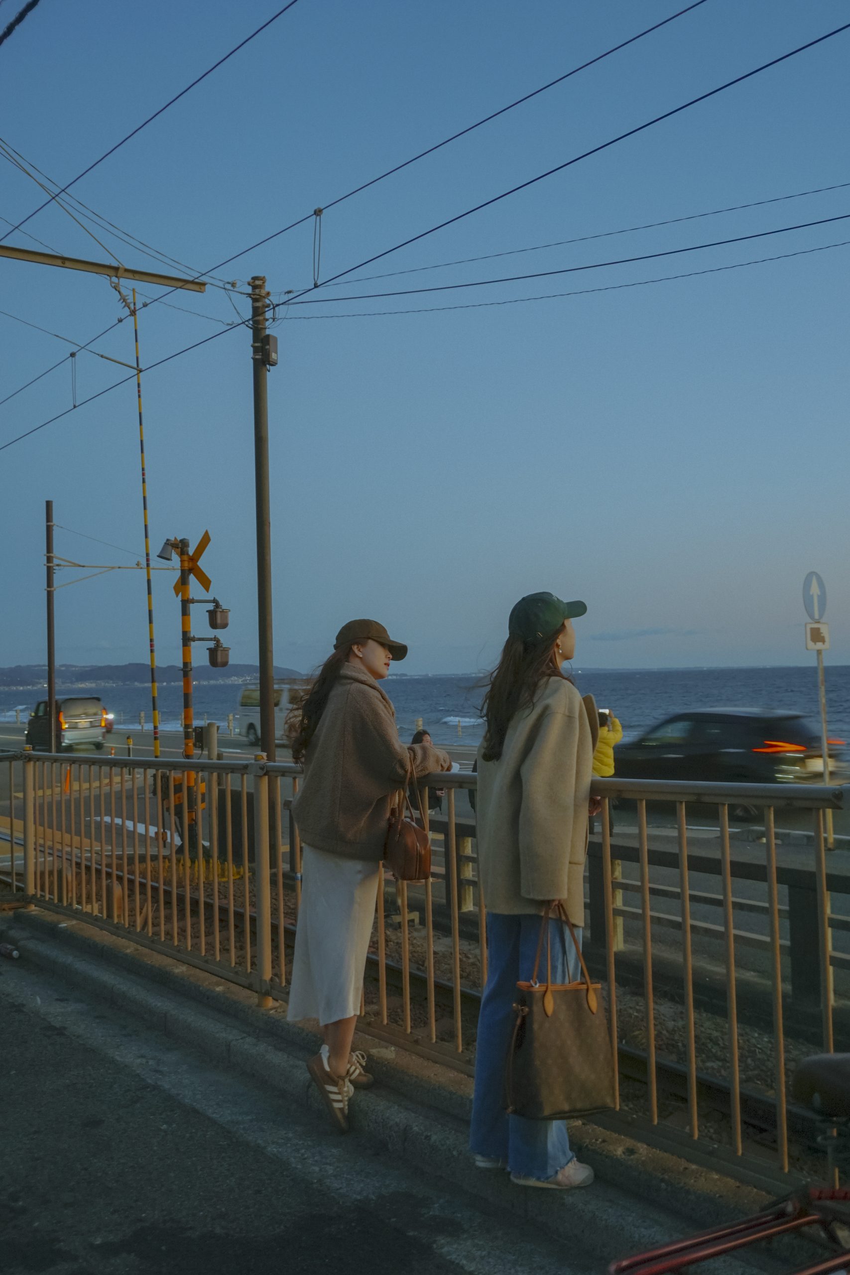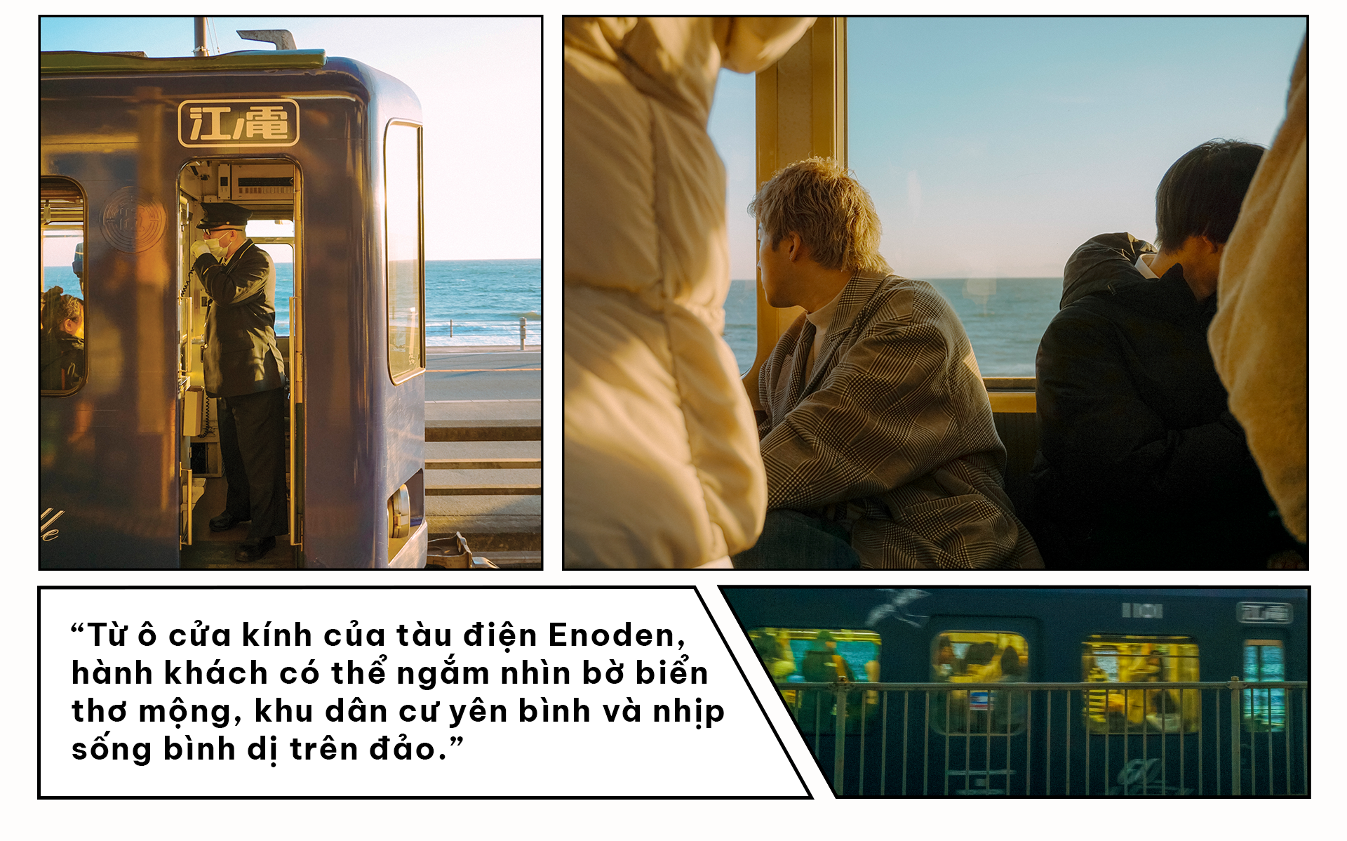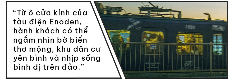 Kết thúc ngày, chúng tôi đi bộ qua cây cầu nối đảo với đất liền, dưới ánh chiều tà dần buông. Từ cây cầu, cả nhóm đến ga gần nhất, lên chuyến tàu Enoden để kịp đến ga Kamakura Koko-Mae vào lúc hoàng hôn.
