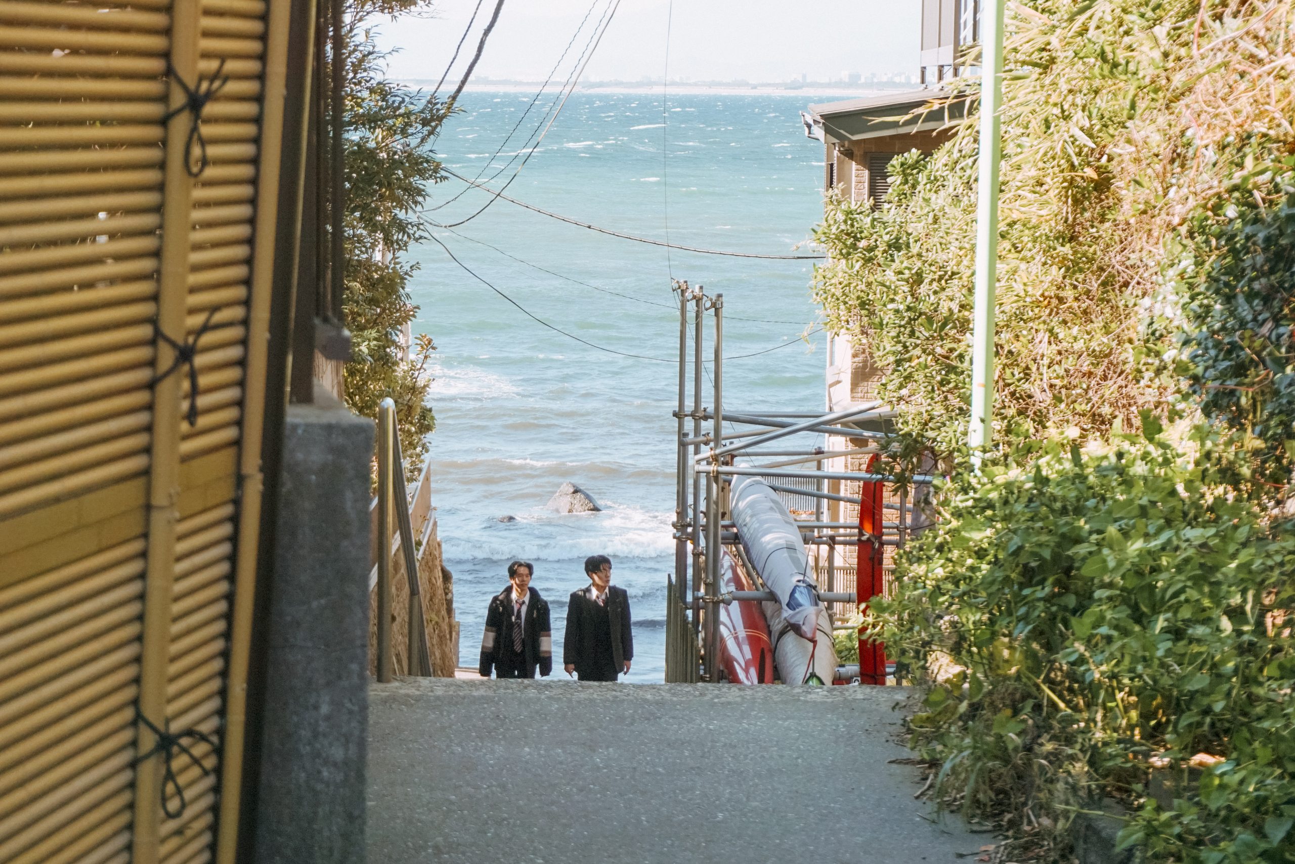Nếu bạn từng mê mẩn bộ truyện “Slam dunk”, nhà ga nhỏ bé này hẳn đã in sâu trong ký ức của bạn. Kamakura Koko-Mae nằm sát bên bờ biển. Buổi chiều, ánh nắng vàng mật trải dài khắp khoang tàu và sân ga, biển xanh thẳm phía xa, gió thổi lồng lộng chỉ chực thổi bay khăn mũ, nhiệt độ lúc này chỉ khoảng 11 độ. Trên sân ga, những nhóm học sinh từ trường cấp ba Kamakura túm năm tụm ba, cười nói rộn ràng làm không gian thêm phần sôi nổi.