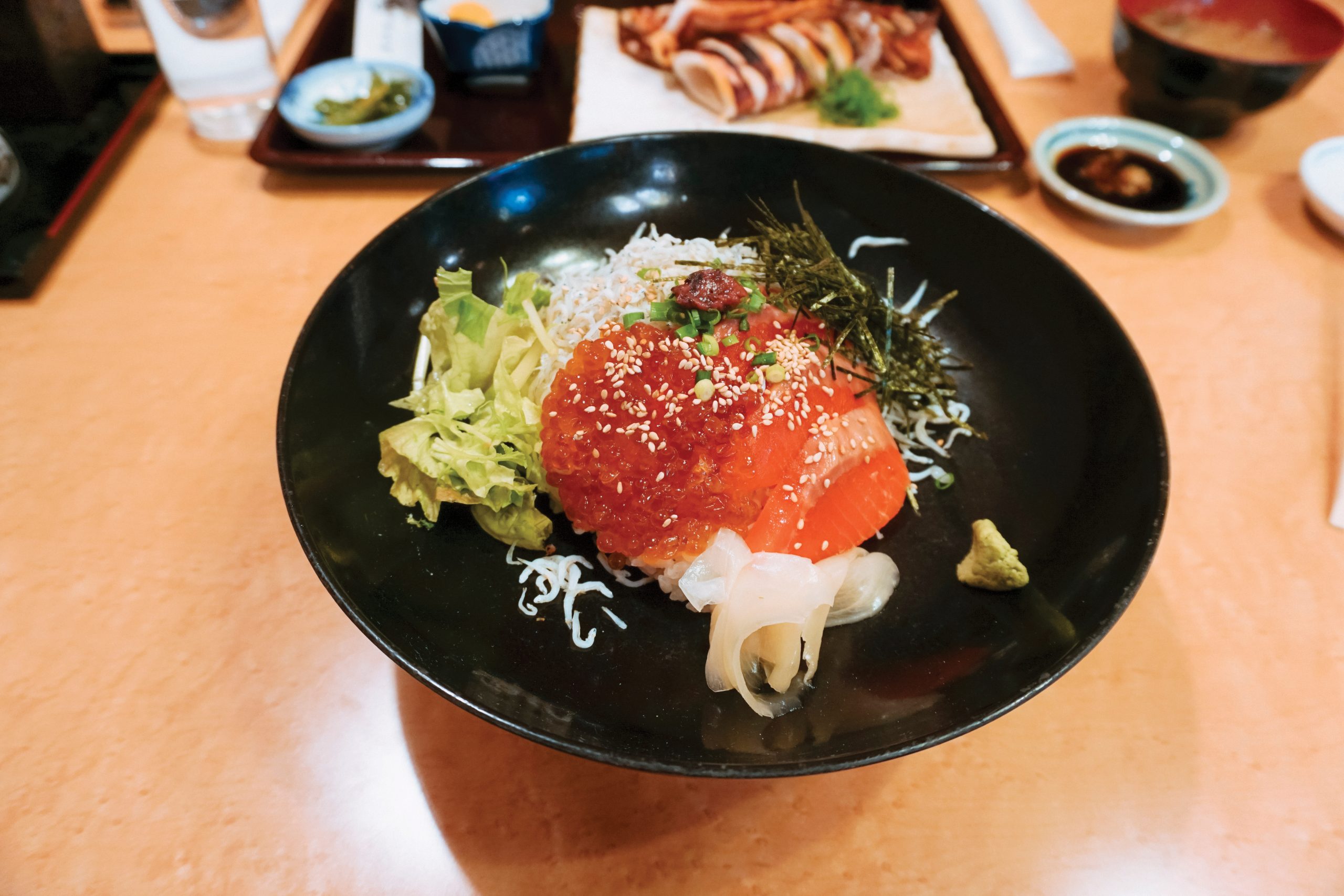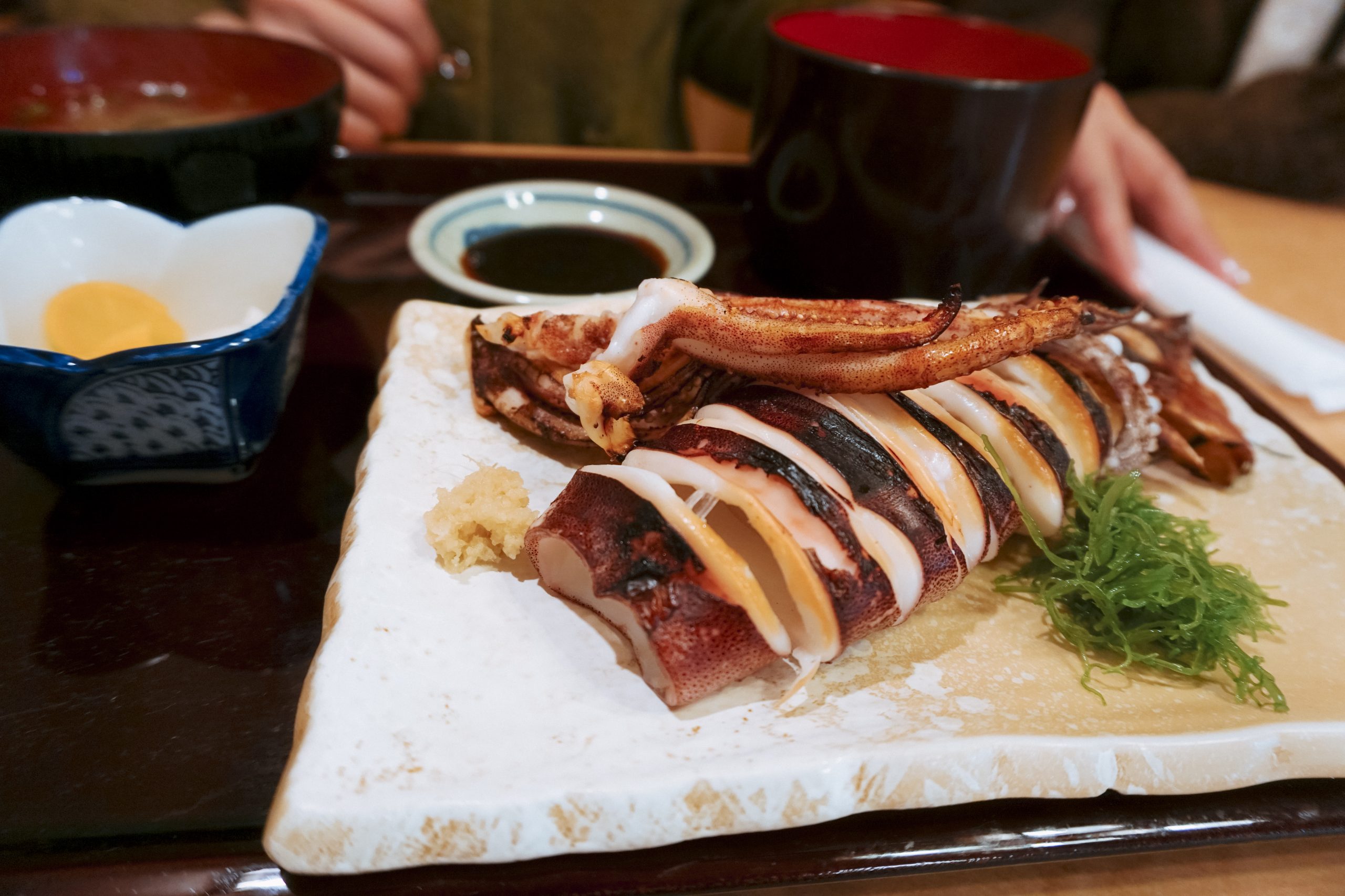 Bữa trưa, chúng tôi chọn quán ăn bên đường, nơi tỏa ra mùi thơm của cá và mực nướng. Quán ăn nhỏ này được phục vụ bởi những người lớn tuổi và trang trí theo phong cách truyền thống. Đồ ăn lên nhanh và cực kỳ nóng sốt, các món hải sản đều rất tươi ngon đúng chất vùng biển. Sau đó, nhóm chúng tôi tấp vào một cửa hàng lưu niệm, nơi bày bán nhiều món đồ thủ công đặc trưng của Nhật Bản, từ khăn furoshiki, tượng giấy bồi cho đến quạt giấy tinh xảo. Giá cả dễ chịu hơn hẳn so với các cửa tiệm ở Tokyo nên nhìn thấy món gì tôi cũng muốn mua về.